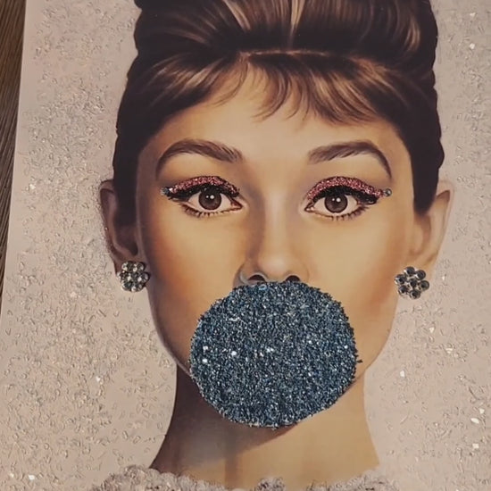 Sparkling Audrey Hepburn Dark Blue Bubble 8x10 Framed