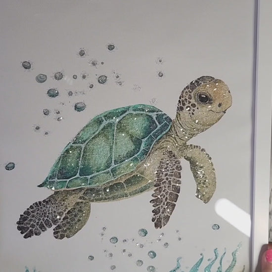 There’s something so special about adding shimmer and shine to a piece that already brings smiles. This little guy is full of personality and sparkle — ready to brighten any space! 12x16 framed.